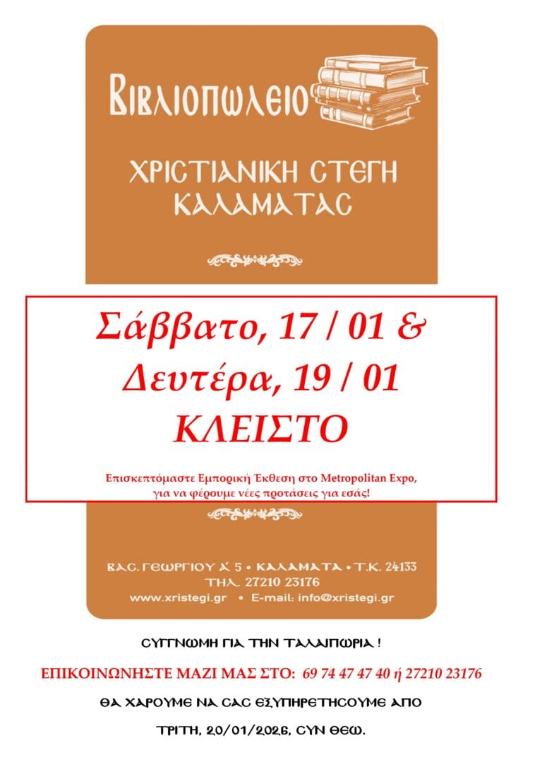 Το Βιβλιοπωλείο μας θα χρειαστεί να παραμείνει κλειστό από την Τρίτη 5 Αυγούστου ως την Πέμπτη 7 Αυγούστου 2025.